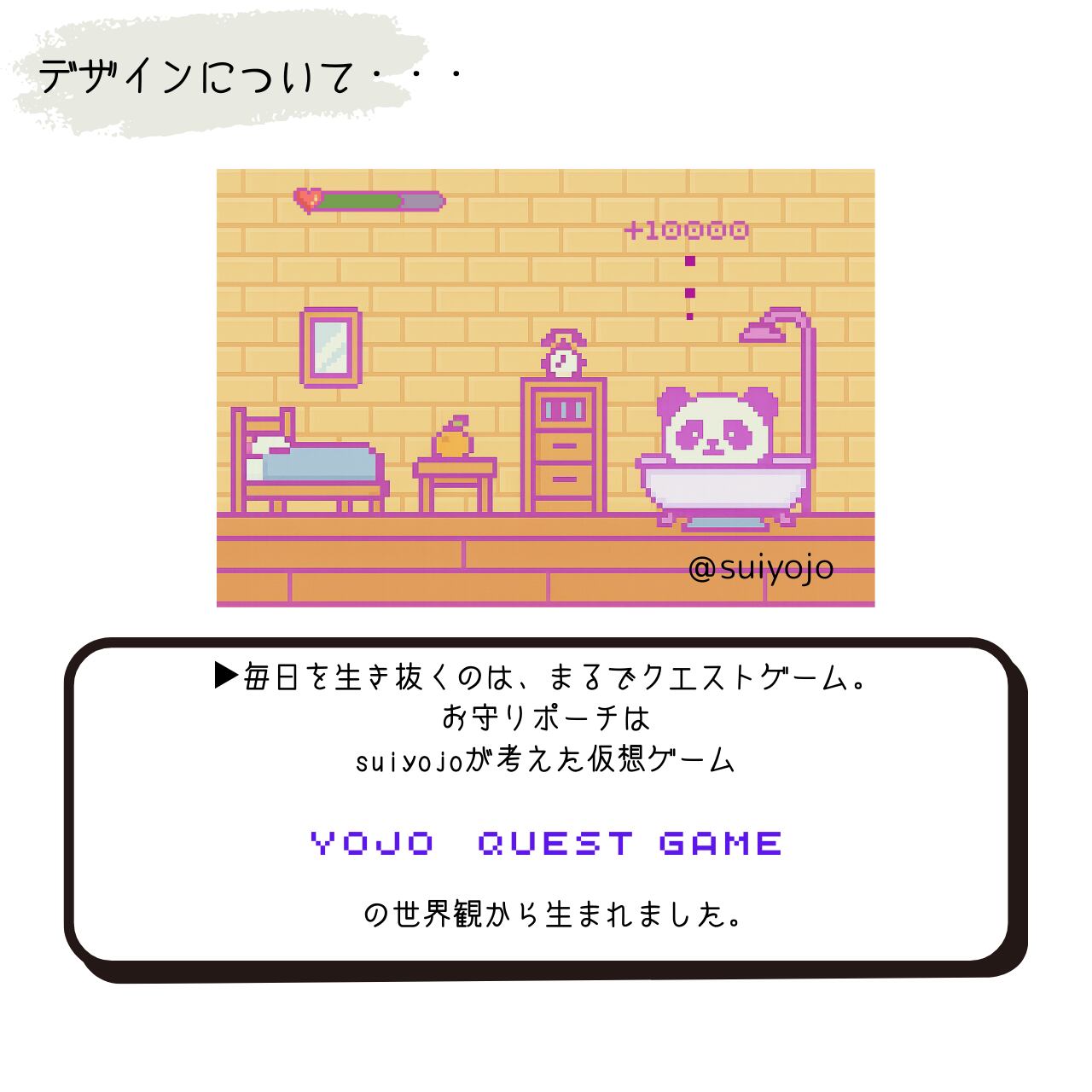 このポーチは、suiyojoが考えた仮想ゲーム「YOJO QUEST GAME」の世界観から生まれました。